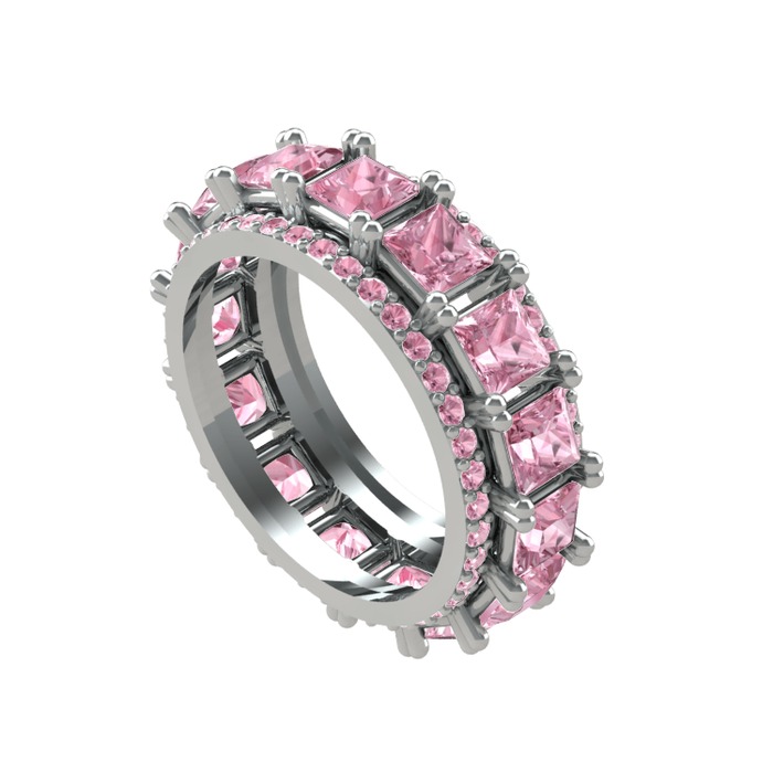 Pembe kuvars 18 ayar beyaz altın yüzük