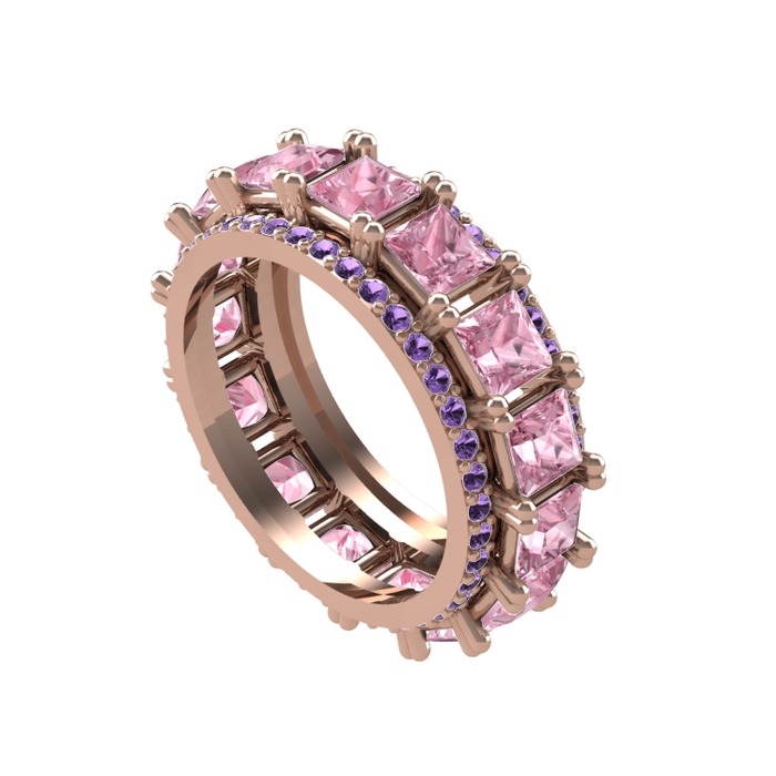 Pembe kuvars ve ametist 925 ayar rose altın kaplama gümüş yüzük