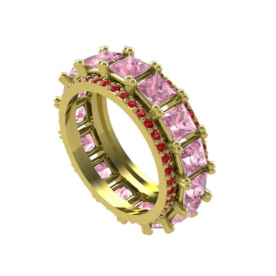 Pembe kuvars ve garnet 8 ayar altın yüzük
