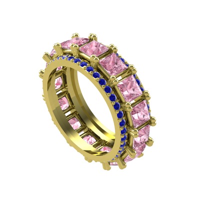 Pembe kuvars ve lab safir 8 ayar altın yüzük