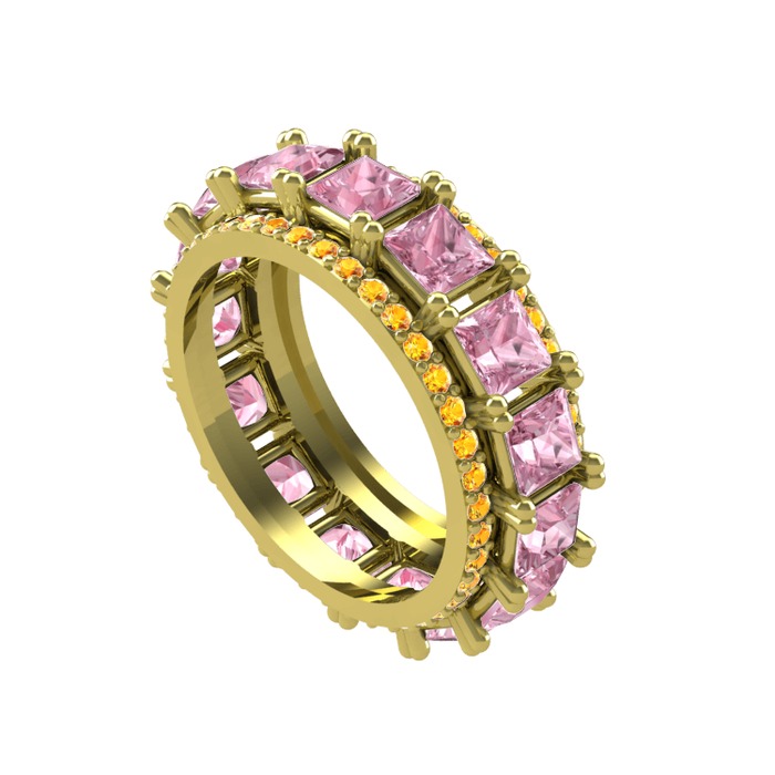 Pembe kuvars ve sitrin 8 ayar altın yüzük