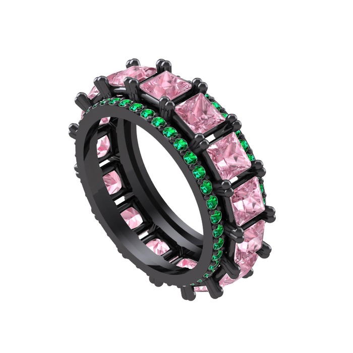 Pembe kuvars ve yeşil kuvars 925 ayar siyah rodyum kaplama gümüş yüzük
