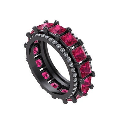 Rodolit garnet ve pırlanta 925 ayar siyah rodyum kaplama gümüş yüzük (0.88 karat)