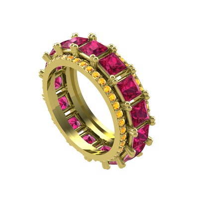 Rodolit garnet ve sitrin 14 ayar altın yüzük