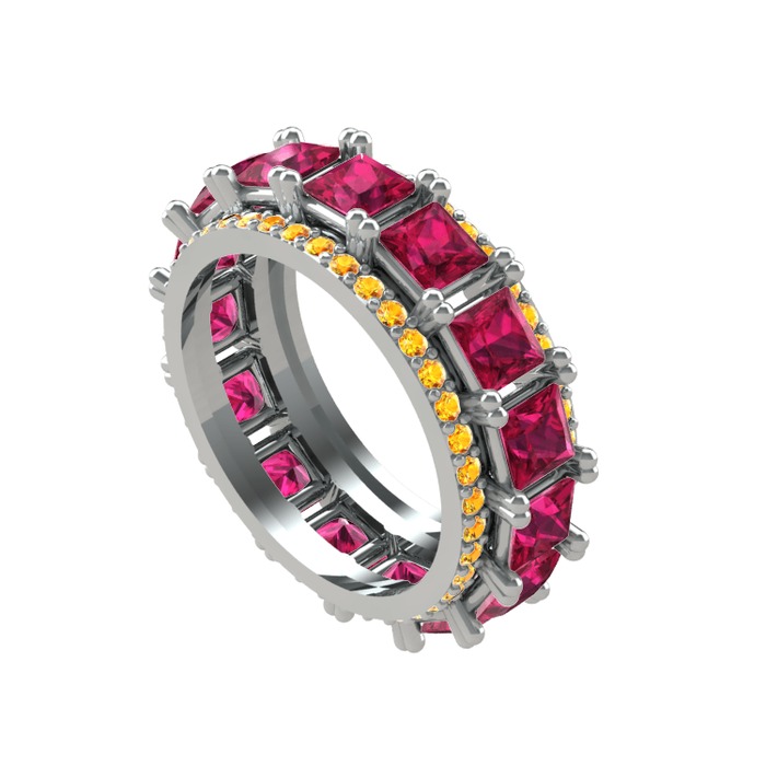 Rodolit garnet ve sitrin 14 ayar beyaz altın yüzük