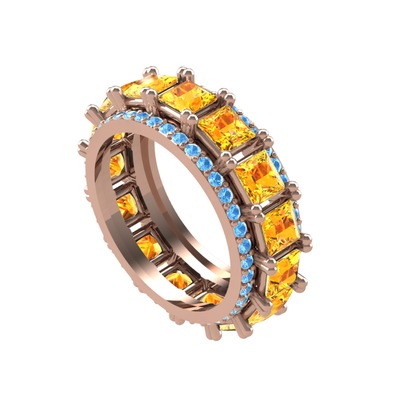 Sitrin ve akuamarin 8 ayar rose altın yüzük