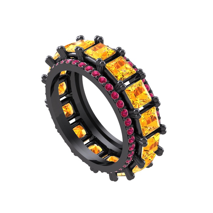 Sitrin ve rodolit garnet 925 ayar siyah rodyum kaplama gümüş yüzük