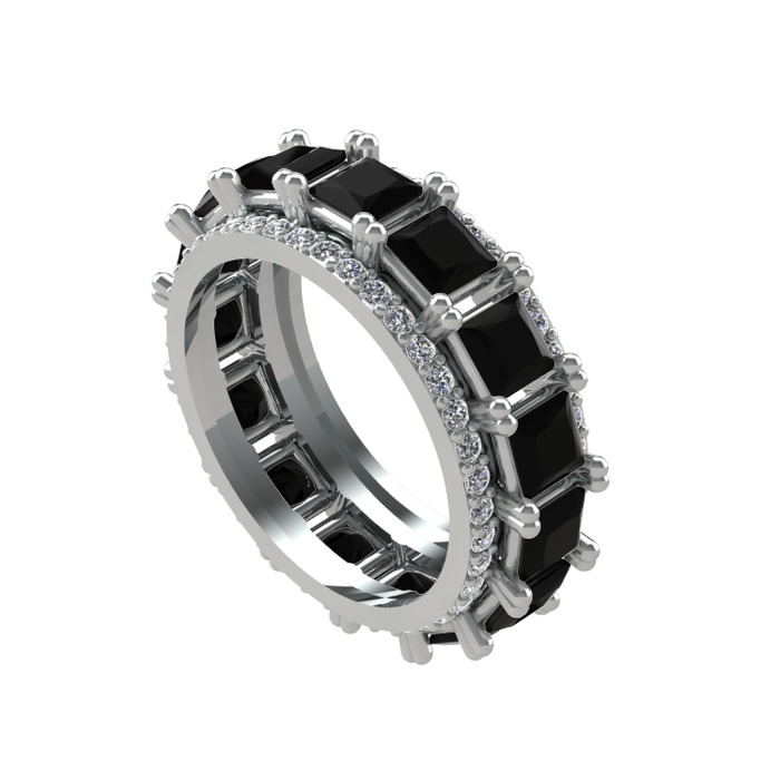 Siyah zirkon ve beyaz zirkon 18 ayar beyaz altın yüzük