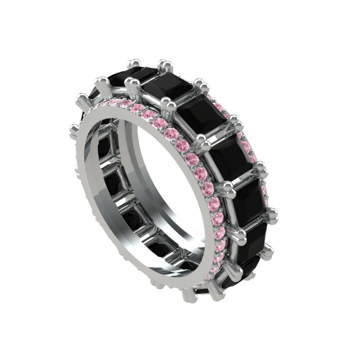 Siyah zirkon ve pembe kuvars 925 ayar gümüş yüzük