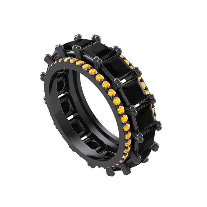 Siyah zirkon ve sitrin 925 ayar siyah rodyum kaplama gümüş yüzük