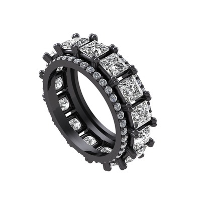 Swarovski ve pırlanta 925 ayar siyah rodyum kaplama gümüş yüzük (0.88 karat)