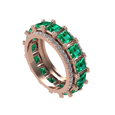Yeşil kuvars ve beyaz zirkon 18 ayar rose altın yüzük