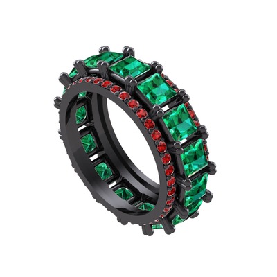 Yeşil kuvars ve garnet 925 ayar siyah rodyum kaplama gümüş yüzük