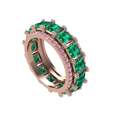 Yeşil kuvars ve pembe kuvars 8 ayar rose altın yüzük