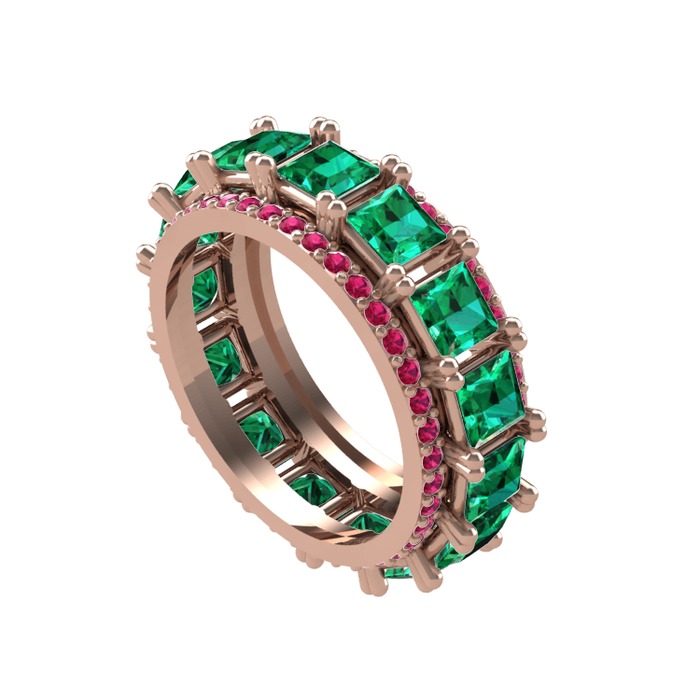 Yeşil kuvars ve rodolit garnet 14 ayar rose altın yüzük