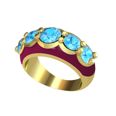 Akuamarin 8 ayar altın yüzük (Bordo kırmızı mineli)