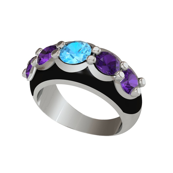 Akuamarin ve ametist 925 ayar gümüş yüzük (Siyah mineli)