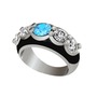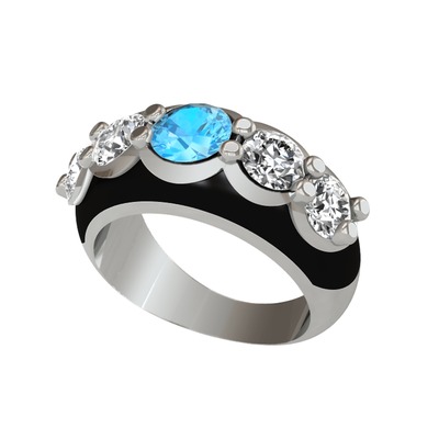 Akuamarin ve beyaz zirkon 8 ayar beyaz altın yüzük (Siyah mineli)