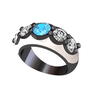 Akuamarin ve beyaz zirkon 925 ayar siyah rodyum kaplama gümüş yüzük (Beyaz mineli)