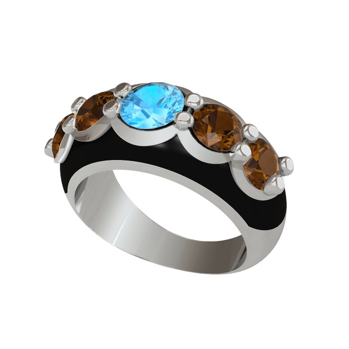 Akuamarin ve dumanlı kuvars 8 ayar beyaz altın yüzük (Siyah mineli)