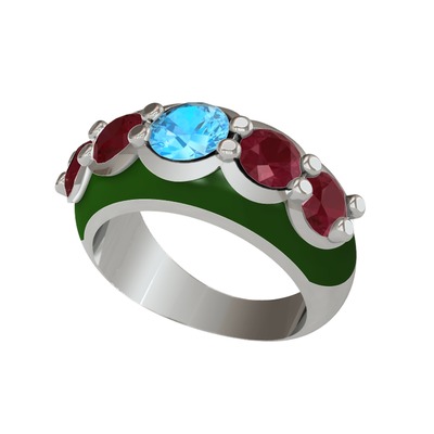 Akuamarin ve kök yakut 18 ayar beyaz altın yüzük (Yeşil mineli)