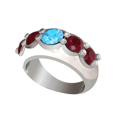 Akuamarin ve kök yakut 8 ayar beyaz altın yüzük (Beyaz mineli)