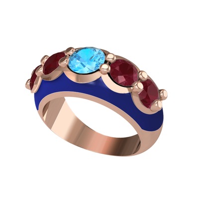 Akuamarin ve kök yakut 8 ayar rose altın yüzük (Lacivert mineli)