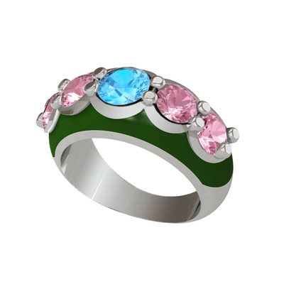 Akuamarin ve pembe kuvars 18 ayar beyaz altın yüzük (Yeşil mineli)