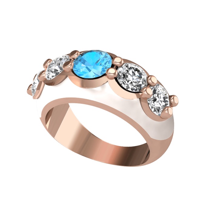 Akuamarin ve pırlanta 14 ayar rose altın yüzük (2 karat, beyaz mineli)