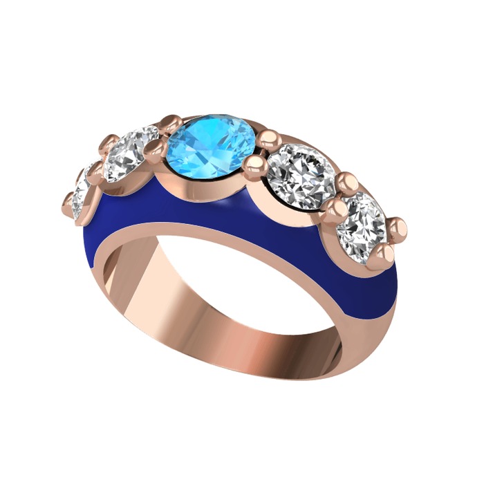 Akuamarin ve pırlanta 14 ayar rose altın yüzük (2 karat, lacivert mineli)