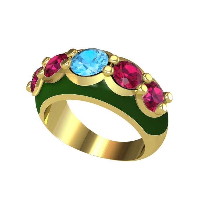 Akuamarin ve rodolit garnet 14 ayar altın yüzük (Yeşil mineli)