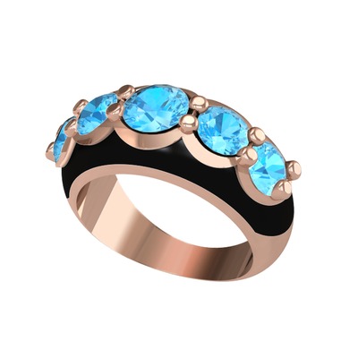 Akuamarin 925 ayar rose altın kaplama gümüş yüzük (Siyah mineli)