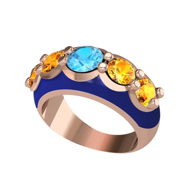 Akuamarin ve sitrin 8 ayar rose altın yüzük (Lacivert mineli)