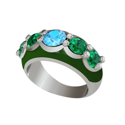 Akuamarin ve yeşil kuvars 18 ayar beyaz altın yüzük (Yeşil mineli)