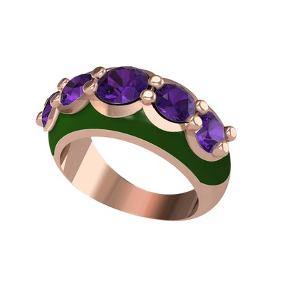 Ametist 8 ayar rose altın yüzük (Yeşil mineli)