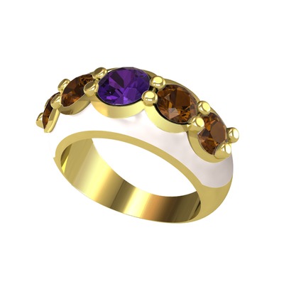 Ametist ve dumanlı kuvars 925 ayar altın kaplama gümüş yüzük (Beyaz mineli)
