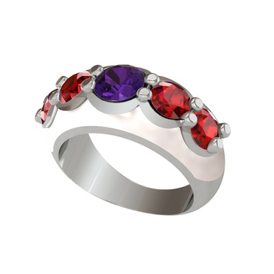 Ametist ve garnet 925 ayar gümüş yüzük (Beyaz mineli)