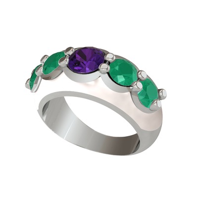 Ametist ve kök zümrüt 18 ayar beyaz altın yüzük (Beyaz mineli)