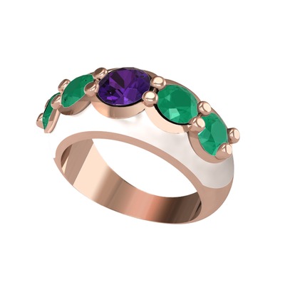 Ametist ve kök zümrüt 8 ayar rose altın yüzük (Beyaz mineli)