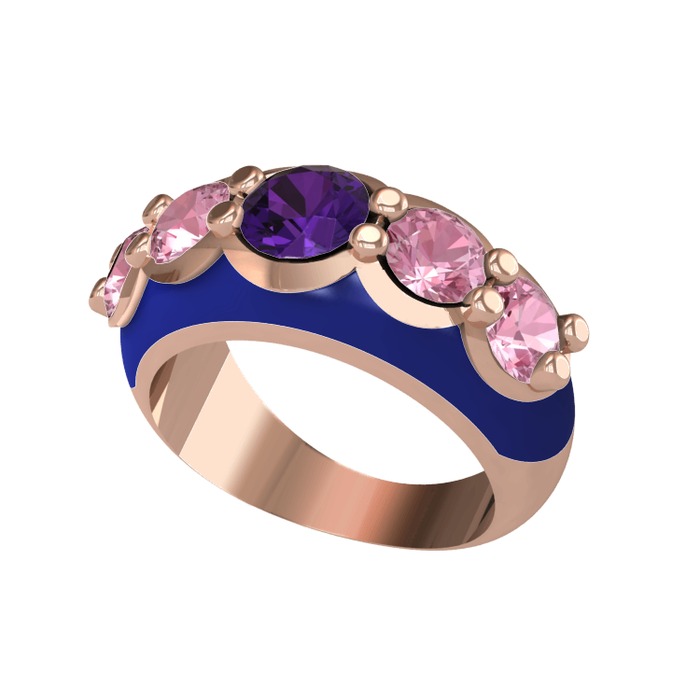 Ametist ve pembe kuvars 18 ayar rose altın yüzük (Lacivert mineli)