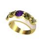 Ametist ve peridot 925 ayar altın kaplama gümüş yüzük (Beyaz mineli)