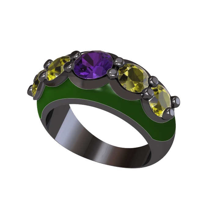 Ametist ve peridot 925 ayar siyah rodyum kaplama gümüş yüzük (Yeşil mineli)