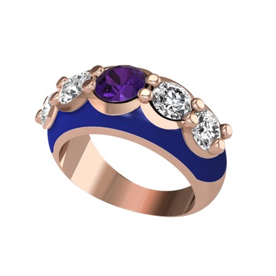Ametist ve pırlanta 14 ayar rose altın yüzük (2 karat, lacivert mineli)
