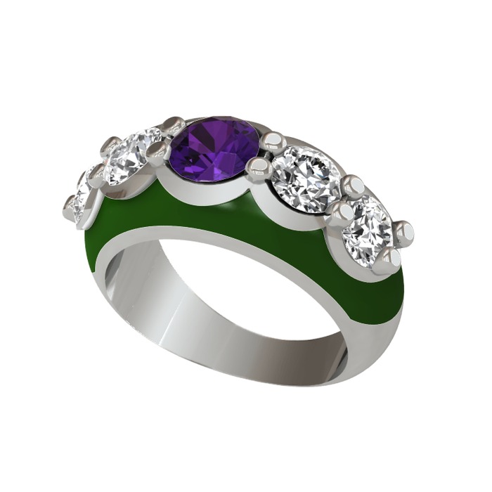 Ametist ve swarovski 18 ayar beyaz altın yüzük (Yeşil mineli)
