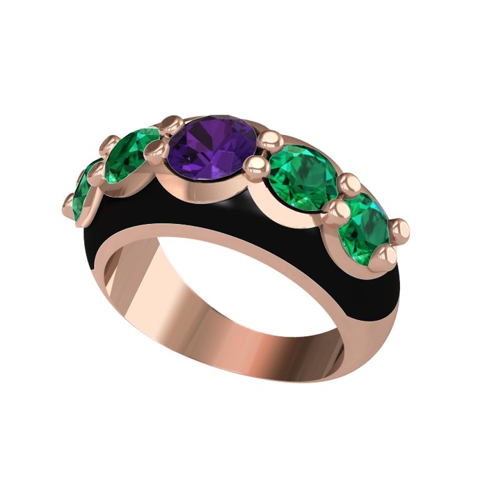 Ametist ve yeşil kuvars 18 ayar rose altın yüzük (Siyah mineli)