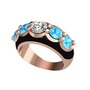 Beyaz zirkon ve akuamarin 14 ayar rose altın yüzük (Siyah mineli)