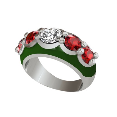 Beyaz zirkon ve garnet 8 ayar beyaz altın yüzük (Yeşil mineli)