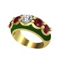 Beyaz zirkon ve kök yakut 14 ayar altın yüzük (Yeşil mineli)
