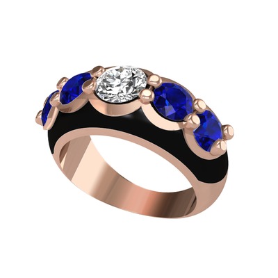 Beyaz zirkon ve lab safir 14 ayar rose altın yüzük (Siyah mineli)