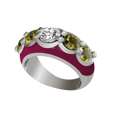 Beyaz zirkon ve peridot 18 ayar beyaz altın yüzük (Bordo kırmızı mineli)